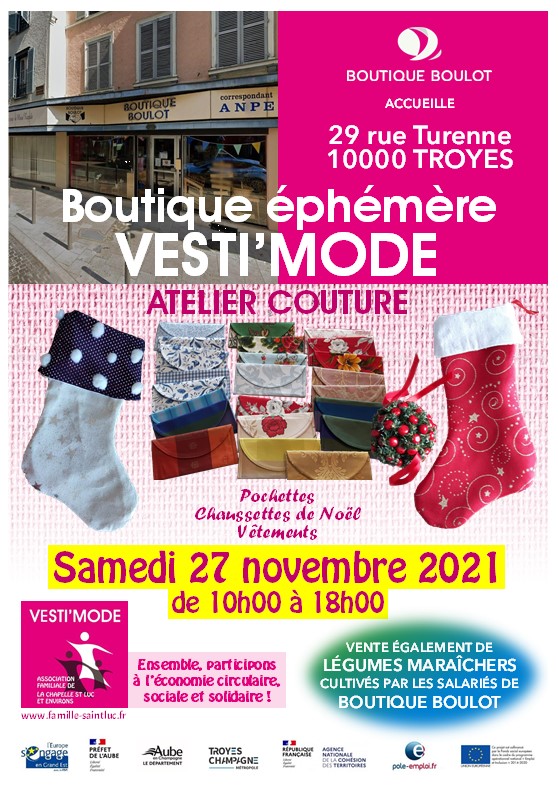Pour la première fois, notre vente éphémère se déroulera dans les locaux de l’Association Intermédiaire Boutique Boulot au 29 rue Turenne à TROYES qui y proposera également diverses variétés de légumes cultivés par les salariés de leur Chantier d’Insertion.